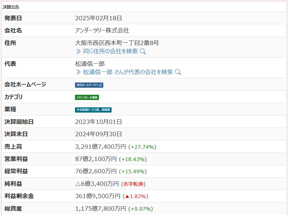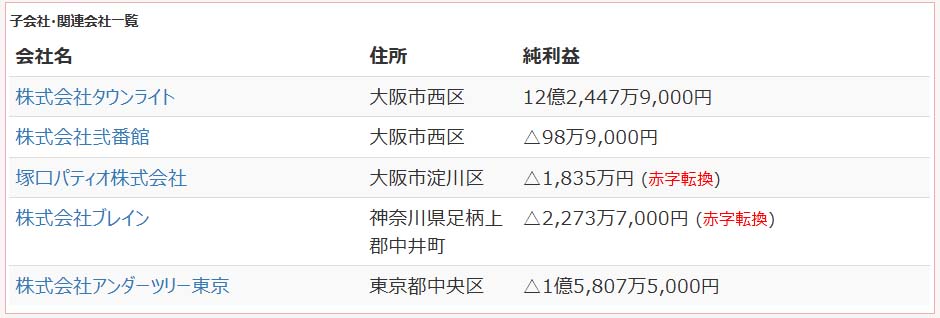 この業績を見て驚きなのが売上が前年対比で27.74%アップとなっております。ただパチンコ店の場合はお客が使ったお金が売上、お客が負けた金額が粗利なので他業種の売上げにあたる営業利益は+18.4%アップ、純利益が約6億の赤字という結果です。関連企業も全て赤字になっています。ただこの赤字は設備投資による意図的な赤字の可能性がありますが、一般人が見れば赤字でヤバいのではないかと疑われる要因といえるでしょう。